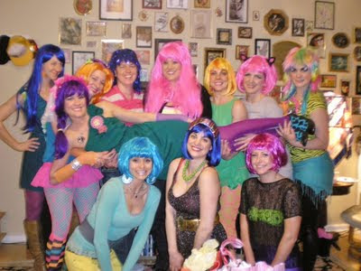 penis veil that you may remember from my bash, genetilia shaped food, WIGS (mandatory), lots of derby gals, yummy champagne punch, kareoke, neon pink Harry Slaughter drinks, dirty games, dirty bars and a dirty strip club. Photos? Yep, we got a few.